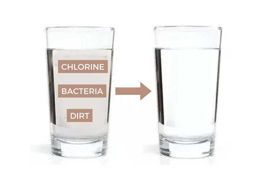 15-vaiheinen suodatusjärjestelmämme pehmentää kovaa vettä, vähentää kalkkikertymiä jopa kalkki- ja kalsiumpitoisuuksilla varustetuilla alueilla ja suodattaa pois klooria, bakteereja, likaa ja ruostetta.